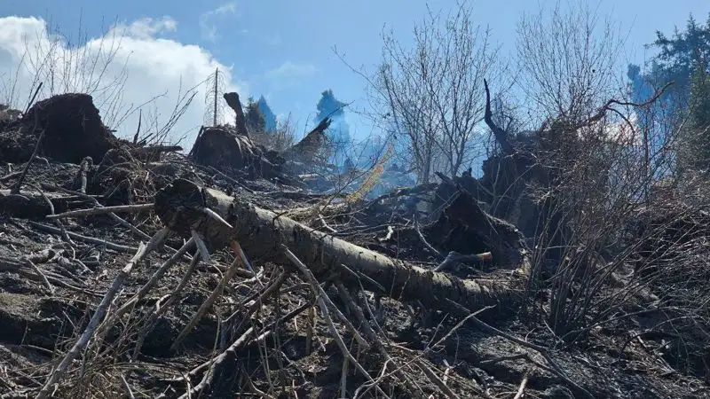 Местность окутана синим дымом, а под ногами – тлеющий пепел. Не нужно быть профессионалом, чтобы понять, что фонду парка нанесен большой ущерб.