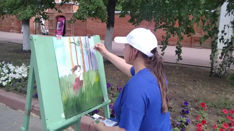 Тут же расположились и будущие художники – ученики художественной школы Костаная. У ребят проходил плэнер, и каждый желающий мог посмотреть, как юные таланты создают свои картины.