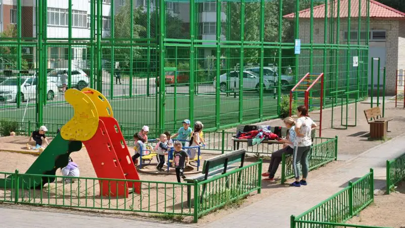 Счастливые потомки огромной офисной армии проводят время на комфортных игровых площадках под присмотром воспитателей детских садов.