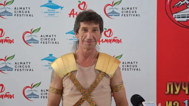 Также на манеж вышли артисты Шымкентского цирка. Его представитель Сергей Мустафин рассказал, что в Алматы приехали восемь сотрудников.