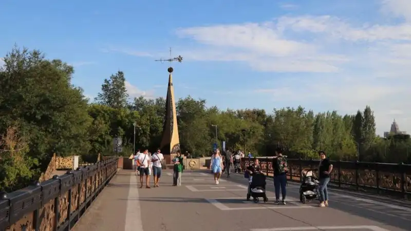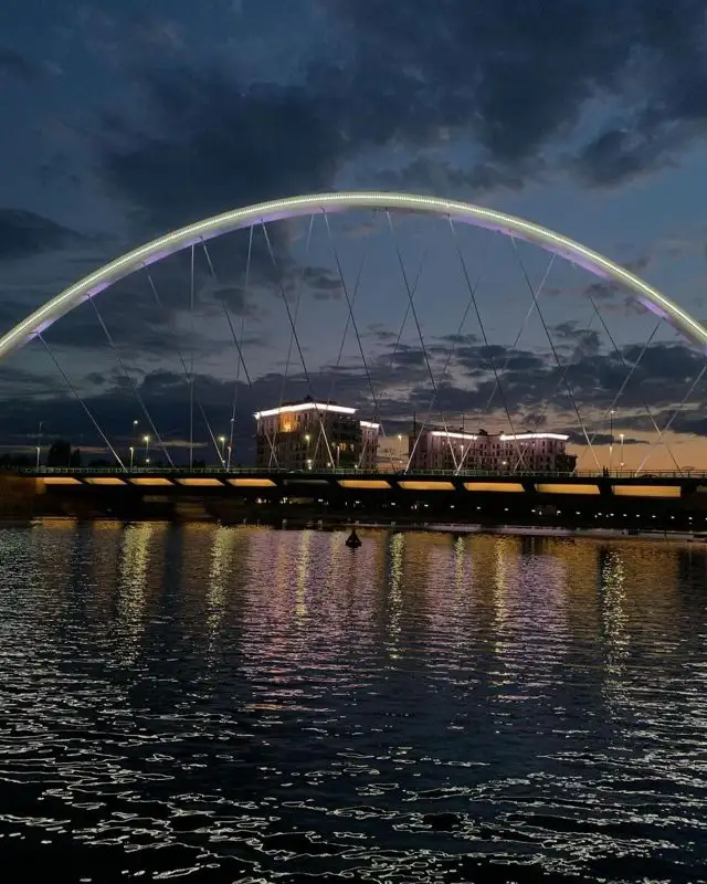 Он украшен в национальном стиле. В казахский орнамент вставлено стекло, имитирующее драгоценные камни. Прекрасный вид моста завершает подсветка, расположенная вдоль него. Меняется она в зависимости от времени суток. С этого моста также открывается незабываемый вид на реку Есиль. Да и вообще, если пройти немного выше, можно выйти на место, которое является сердцем столицы, – набережную реки Есиль. Гости города, которые впервые посетили Астану, просто обязаны увидеть это место и прогуляться, особенно в выходные и праздничные дни.
