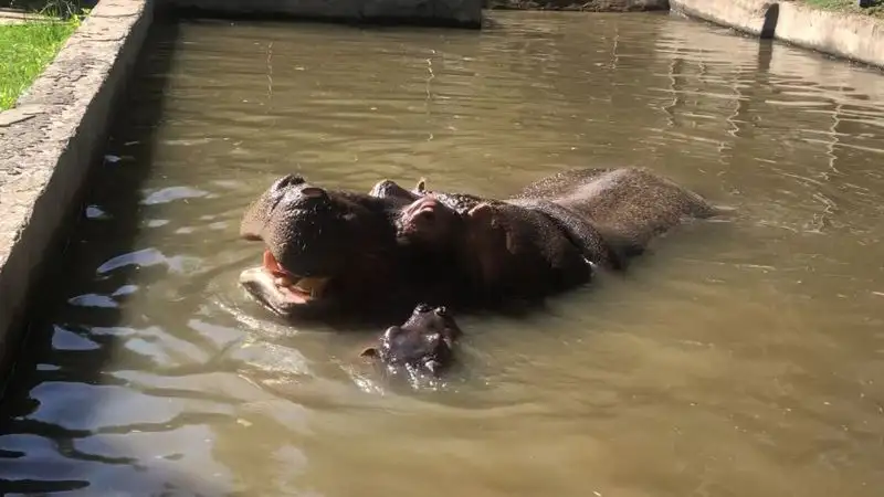 Агбай Ажибаев отмечает, что Глория – долгожданный детеныш. Бегемот 10 лет сидел без самки, ее привезли в 2018 году. Но лишь спустя пять лет у них проснулась любовь.