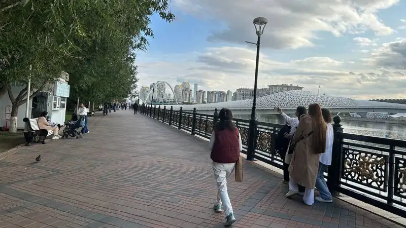 Климат в Астане резко континентальный. И коренные жители знают, что солнечное утро может смениться запросто проливным дождем и порывистым ветром. Поэтому на всякий случай носят всегда с собой теплые вещи. Но нынешняя осень заняла особое место среди самых холодных. Уже в начале сентября она одела людей в куртки и шапки. Но это не мешает привычному ходу жизни астанчан: люди встречаются, гуляют и общаются.
