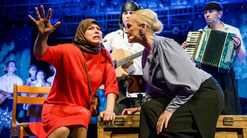 Одна из самых трогающих сцен – когда Вера Марецкая в исполнении заслуженной артистки РК Ольги Коржевой приходит к Наталии Сац в исполнении Татьяны Костюченко, оказавшейся в Алма-Ате после ГУЛАГА, и уговаривает ее вернуться в режиссуру.