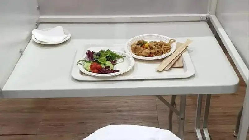 Номера представляют собой комнаты в невысоких зданиях. Члены казахстанской делегации показали, чем и как их кормят в Чжанцзякоу. В олимпийской деревне спортсмены и тренеры питаются в отдельных кабинках. Видимо, чтобы не только не заразиться COVID-19, но и не отвлекаться во время еды.