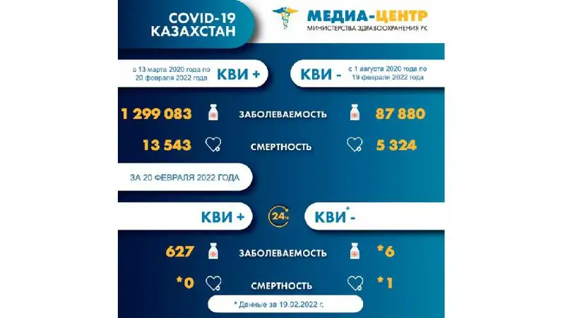На 21 февраля лечение от КВИ продолжают получать 32 627 человек (31 499+ и 1128 КВИ-), из них в стационарах находятся 4423 пациентов, на амбулаторном уровне – 28 204.