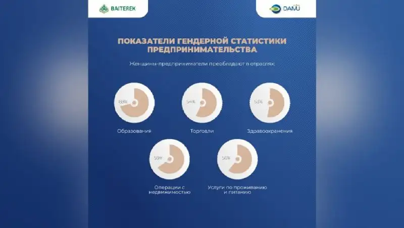 Доля женского предпринимательства среди проектов по такому инструменту, как субсидирование ставки вознаграждения, составила 39%. Это 16,7 тыс. проектов. В денежном выражении объем господдержки достиг 1,13 млрд тенге.
