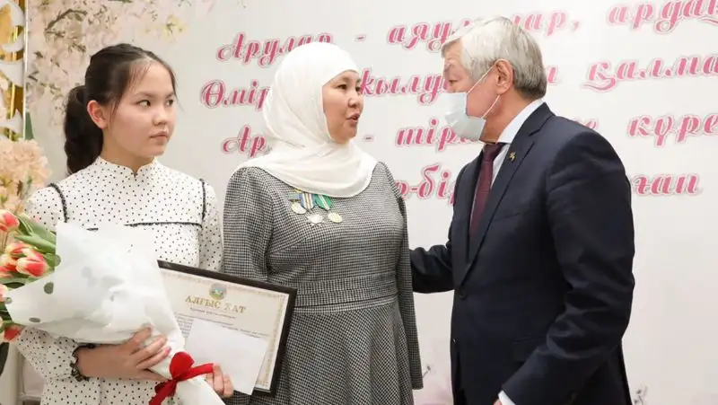 В ходе встречи виновницы торжества были награждены медалями «Қазақстан Республикасының Тәуелсіздігіне 30 жыл», почетными грамотами и благодарственными письмами акима области. Также Бердибек Сапарбаев трем многодетным матерям вручил подвеску «Алтын алқа», и трем – «Күміс алқа».