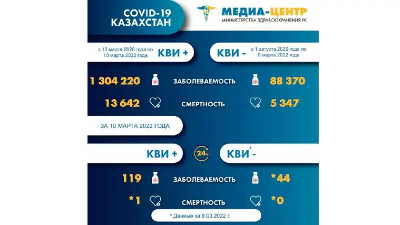 На 10 марта лечение от КВИ продолжают получать 11 910 человек (10 859+ и 1051 КВИ-), из них в стационарах – 1124, на амбулаторном уровне – 10 786.
