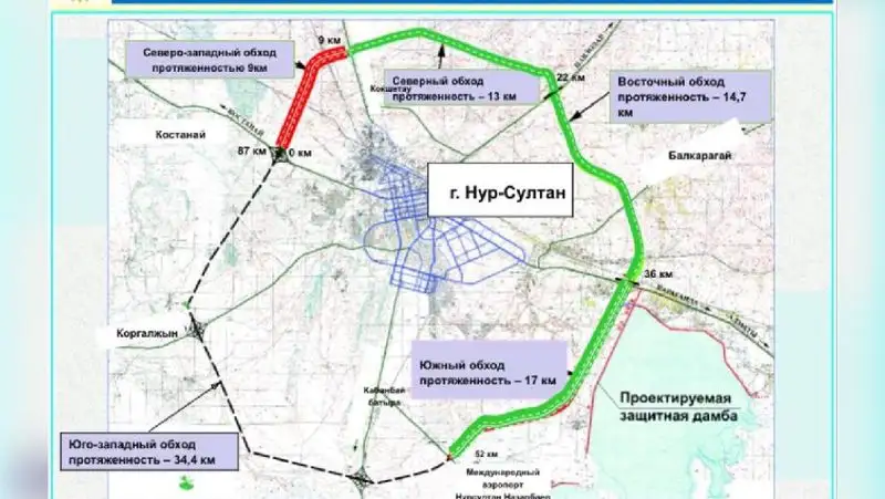 Почти на пять месяцев закроют участок большой кольцевой дороги в Нур-Султане