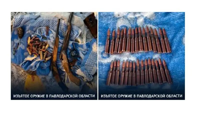В Павлодарской области выявлен тайник с двумя обрезами, гранатой «Ф-1», пистолетом марки «PTB140/2» и 70 патронами различного калибра.