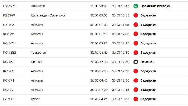 Авиарейсы отменяют и задерживают в аэропорту Нур-Султана