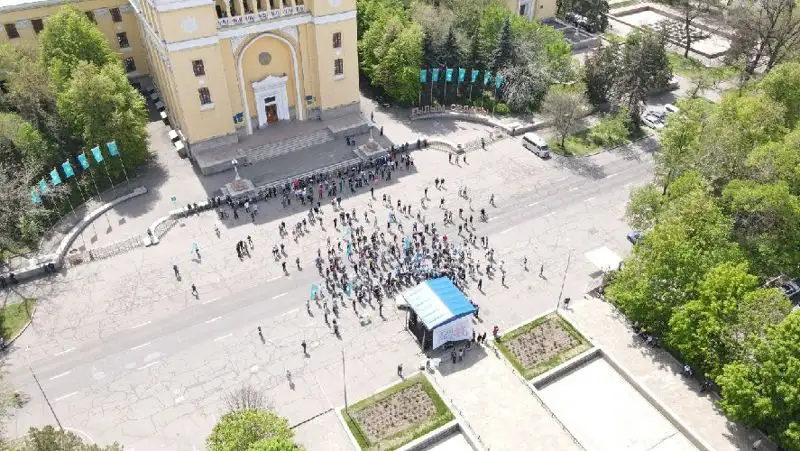 В сквере имени Шокана Уалиханова собралось около ста человек, включая представителей прессы, а также небольшое количество полицейских.