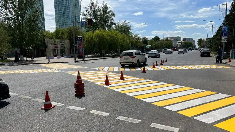 В целях обеспечения безопасных и комфортных условий движения пешеходов, с учетом наличия пешеходной аллеи «Променад» на перекрестке ул. Кенесары – ул. Мамбетова переход проезжей части организован по диагонали с нанесением соответствующей дорожной разметки и установкой дорожных знаков. Пресс-служба ДП Нур-Султана