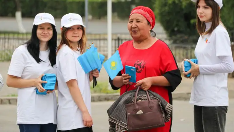 Раздаче предшествовала небольшая творческая программа – хор воспитанников детской музыкальной школы исполнил гимн Республики Казахстан, затем волонтеры с флажками и шоколадом разошлись в разные стороны встречать прохожих.
