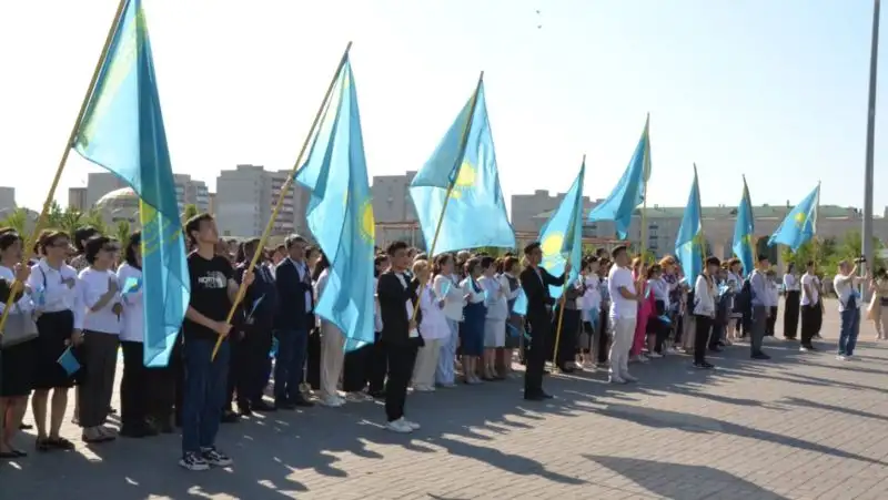 Одномоментно со всей страной западноказахстанцы подняли Государственный флаг и вместе исполнили гимн страны. Рука на сердце во время исполнения символизировала сердечность и чистоту помыслов человека, искреннюю любовь к стране, высокий патриотизм и гордость.