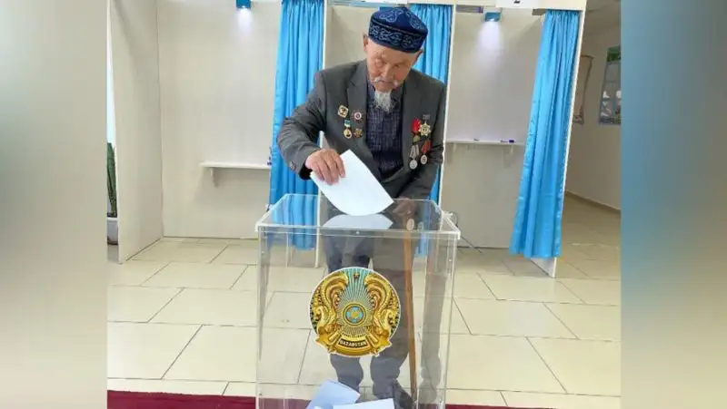 В городе Косшы проголосовал 97-летний ветеран Великой Отечественной войны Нургасым Ажитаев. Аксакал сам прибыл на участок, чтобы отдать свой голос.