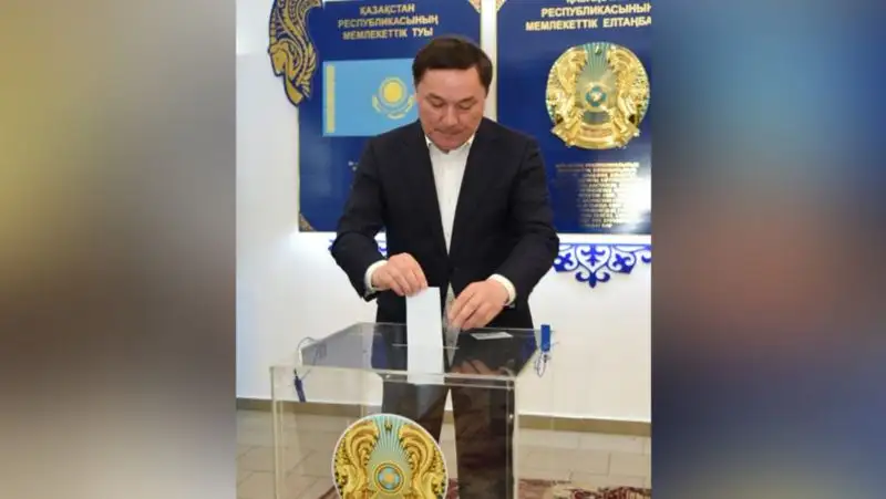 На своем избирательном участке проголосовал аким Акмолинской области Ермек Маржикпаев.