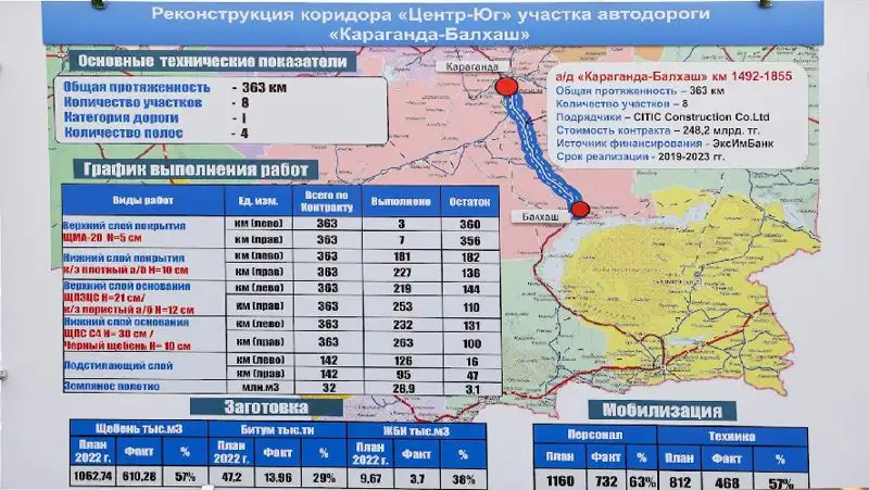Так, к примеру, полномасштабные дорожно-строительные работы ведутся на автодорогах республиканского значения Караганда – Балхаш и Балхаш – Бурылбайтал и др. Здесь работы возобновили на всех 8 участках.
