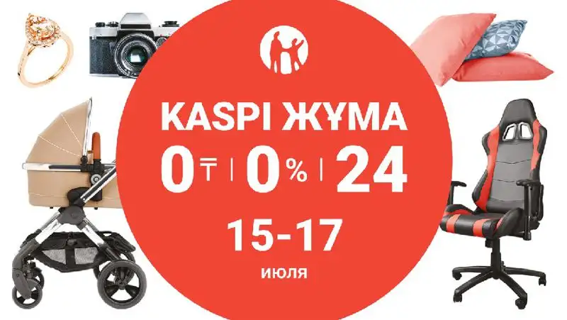 15, 16 и 17 июля все покупки в интернет-магазине на Kaspi.kz и в магазинах партнеров в городах по всему Казахстану в рассрочку на 24 месяца.