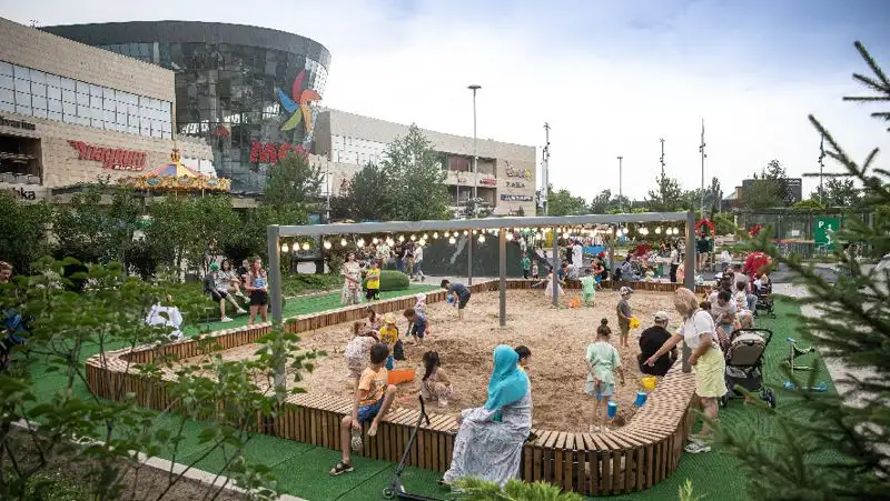 Еще 10 лет назад на пересечении Сейфуллина – Макатаева в окружении жилых кварталов стоял остов заброшенного завода. В этом районе не было оборудованных детских площадок, современного кинотеатра, супермаркета в шаговой доступности, хороших ресторанов и кофеен. В августе 2014 года все изменилось – здесь появился современный торгово-развлекательный центр площадью 106 200 кв. м, который отвечает всем запросам горожан.