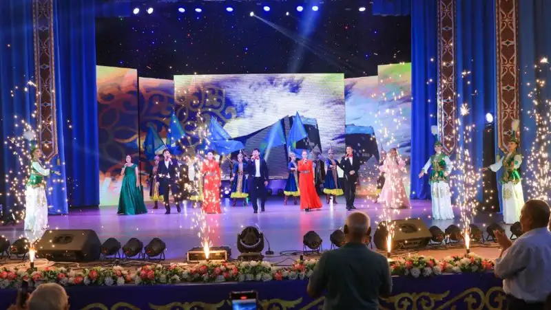 После торжественной части артисты областной филармонии имени Кенена Азербаева выступили с праздничным концертом.