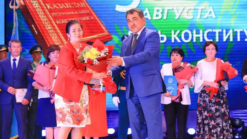 Празднование Дня Конституции стало прекрасным поводом отметить и наградить знаками "Облысқа сіңірген еңбегі үшін", почетными грамотами и благодарственными письмами акима области жамбылцев, которые своими достижениями в разных сферах вносят вклад в социально-экономическое развитие региона, в укрепление общественного согласия.