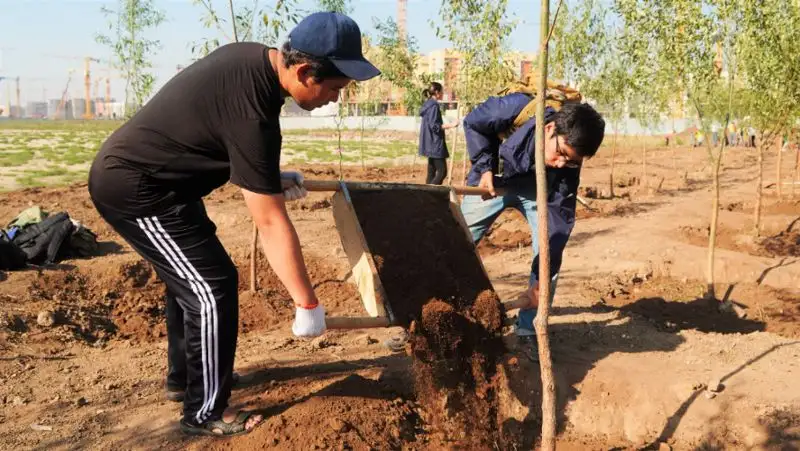 В посадке деревьев приняли участие более 100 человек, это жители города, волонтеры Молодежного ресурсного центра "Астана Жастары" Управления по вопросам молодежной политики города Нур-Султана и экоактивисты.