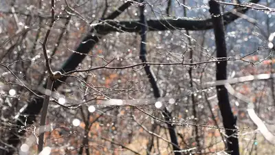 Покрытые льдом деревья сняли на видео в парке Алматы