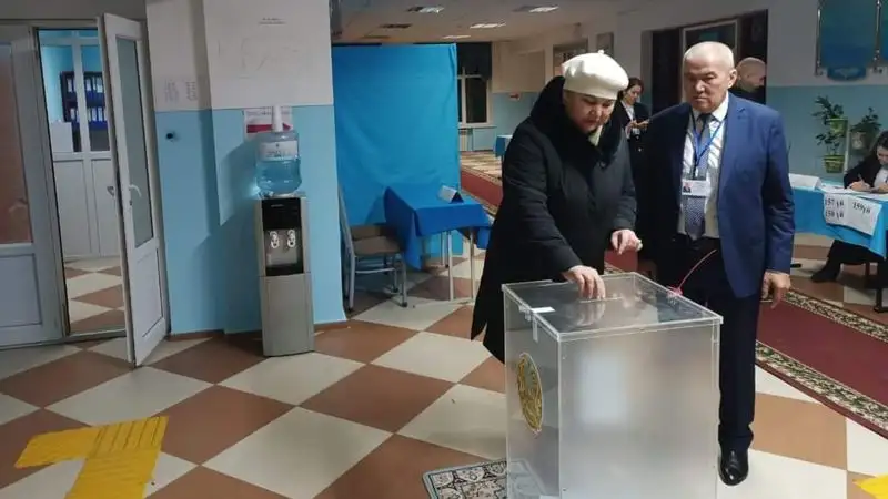 Многодетная мать Акнур Жандилдаева тоже голосует.