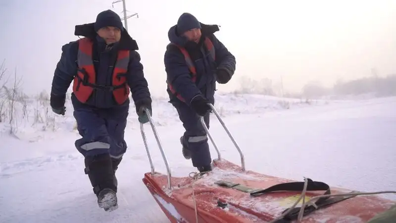 "Хорошо, если под рукой имеются длинная палка, доска, веревка или другие предметы – их надо использовать для оказания помощи. Если же ничего нет, то необходимо обойтись подручными средствами – ремнем, шарфами, курткой. Но могут быть случаи, когда нет никаких подсобных предметов для оказания помощи. Тогда несколько человек ложатся на лед и цепочкой продвигаются к пострадавшему, удерживая друг друга за ноги, а первый подает пострадавшему ремень, веревку и т.п.".Пресс-служба ДЧС ВКО