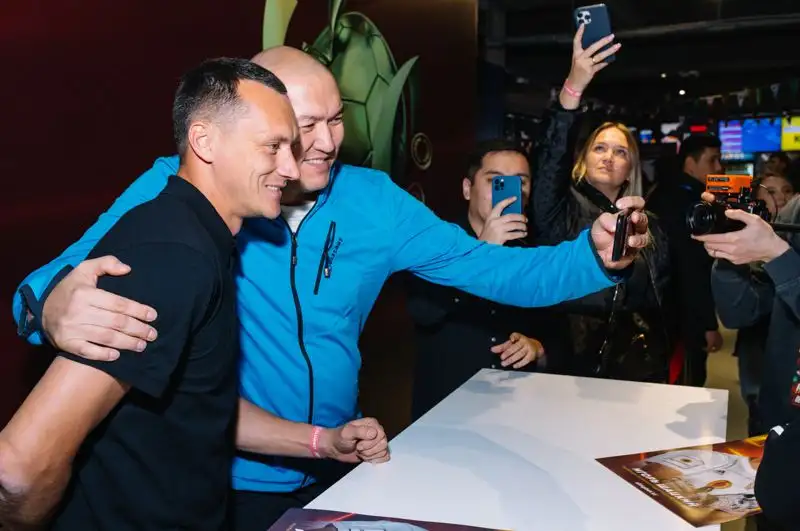 Вечер проходил в компании спортивных экспертов и блогеров, которые делились своими комментариями и прогнозами. Вратарь сборной Казахстана Игорь Шацкий провел автограф-сессию. А высокий градус вечера подогревался розыгрышем призов и выступлением группы барабанщиков.