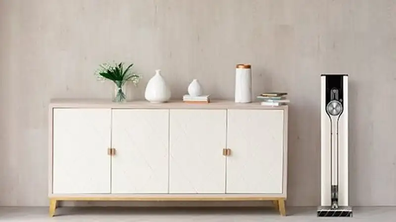 Беспроводной вертикальный пылесос LG Objet CordZero™ A9 Kompressor™ A9T-ULTRA2 спрессовывает мусор до 2,4 раза, а после установки на станцию All-in-One™ контейнер автоматически очищается. Станция производит дезинфекцию мусорного мешка ультрафиолетовым светом UVC. Две батареи в комплекте обеспечивают работу до 120 минут, а комплект из 6 насадок позволяет производить сухую и влажную уборку.
