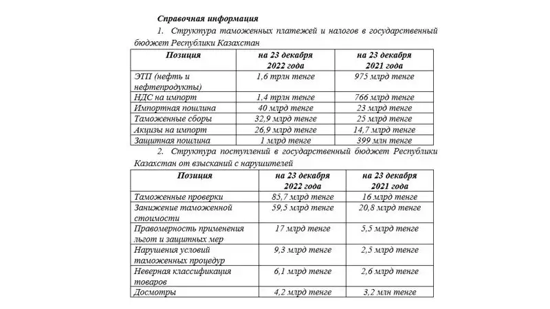"Особое внимание КГД МФ РК в 2022 году было уделено устранению барьеров на границе с Китайской Народной Республикой, занимающей первое место по товарообороту среди всех торговых партнеров Республики Казахстан (22,8%, 17,8 млрд долларов США). Налажен онлайн-обмен экспортными декларациями, сведения по ним приходят до того, как товар заедет на территорию КНР и Казахстана. До 2022 года Казахстан получал только сведения по товарам, перемещаемым автотранспортом (17% импорта из КНР). С 2022 года Казахстан начал получать данные по товарам, перемещаемым железнодорожным путем (80% импорта из КНР). Обеспечено достоверное декларирование импорта из КНР и по стоимости, и по количеству товаров. Как результат, на 23 декабря 2022 года в государственный бюджет РК поступило таможенных платежей и налогов на сумму 627,3 млрд тенге, что на 64% больше, чем в 2021 году (382,2 млрд тенге)", - рассказали в ведомстве.