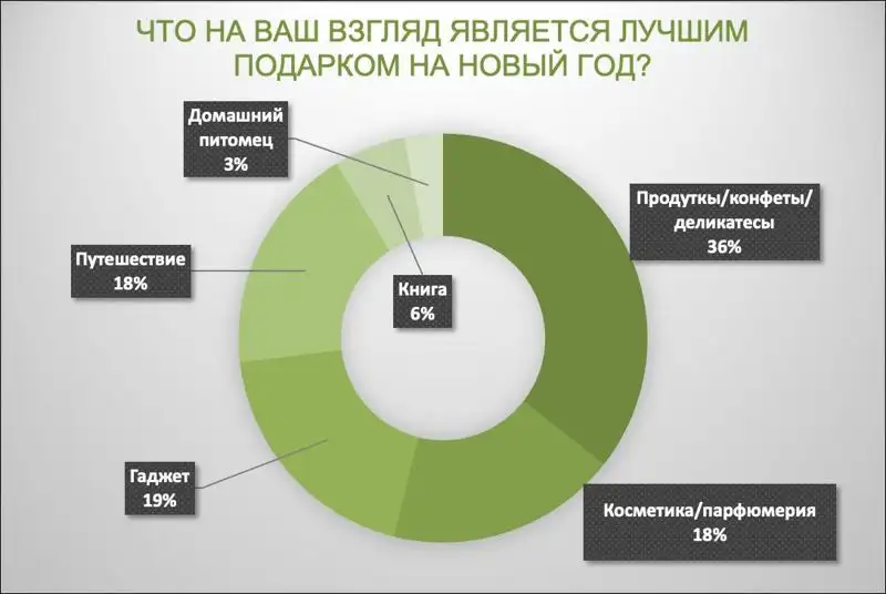 Лучшим подарком казахстанцы считают продукты питания (36%) или гаджеты (19%).