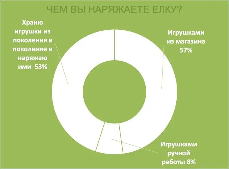 Примечательно, что более половины казахстанцев хранят елочные игрушки из поколения в поколение, а вот игрушки ручной работы покупает не более 8% респондентов.