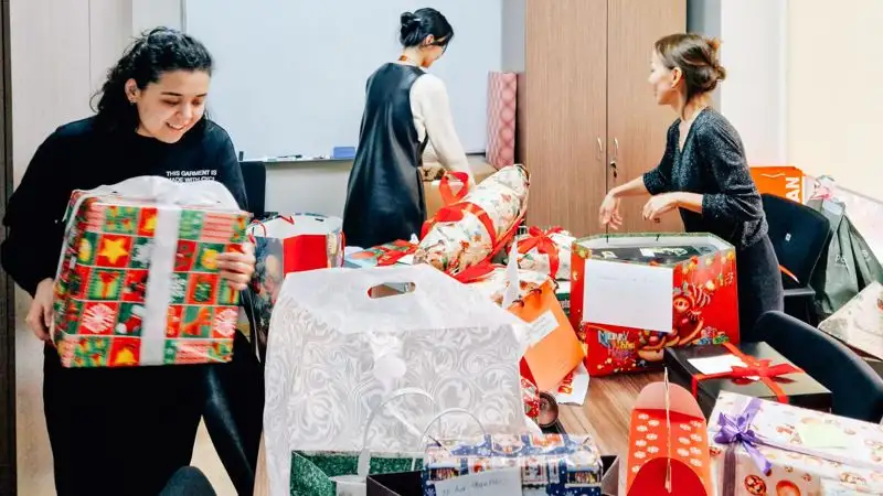 Сотрудники банка инициировали волшебную акцию "Новогоднее чудо" по исполнению желаний детей из малообеспеченных и неполных семей из всех регионов Казахстана, пациентов Казахского НИИ онкологии и радиологии, а также детей в попечительстве благотворительного фонда "Досбол".