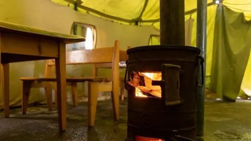 В соседнем Яккасарайском районе в районе Бабура также стоят палатки. Электричество отключили накануне вечером. Жители собрались вокруг печки, пьют чай с печеньем, общаются и ждут плов.