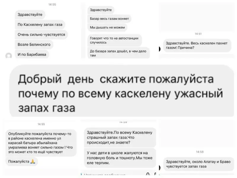 На сильный запах газа, который ощущается по городу, жалуются многие жители Каскелена. Также они жалуются на головную боль и на то, что дышать трудно.
