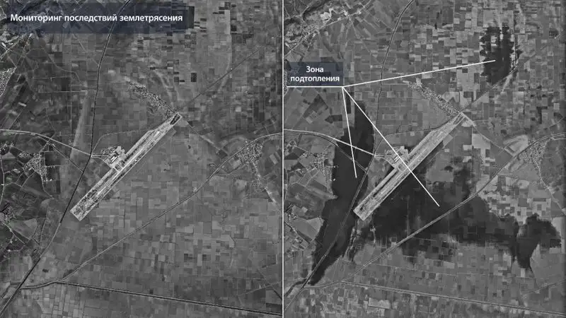 Аппарат также снял аэропорт Хатай после серии землетрясений.