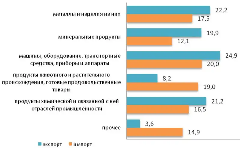 Так, за год экспорт товаров составил 9 709,8 млн долларов (больше на 24,3%), а импорт – 18 601,4 млн долларов (на 0,9% меньше).