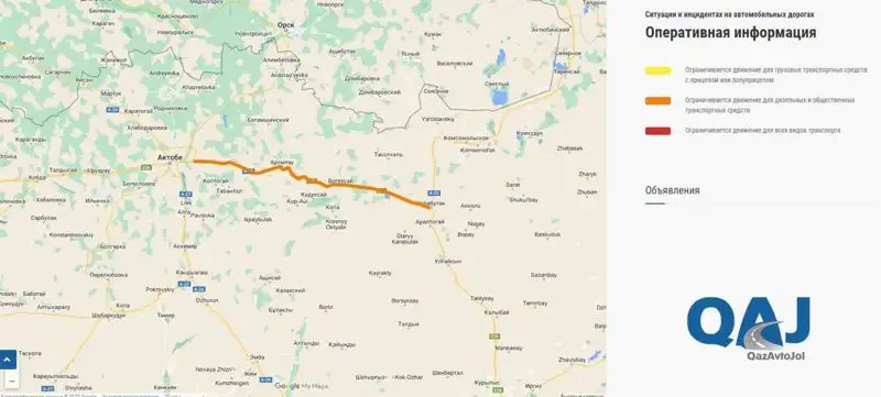 По данным Telegram-канала "Казавтожол", дороги закрыты в Актюбинской (1 участок), Акмолинской (3 участка), Северо-Казахстанской (8 участков) и Костанайской регионах (3 участка).