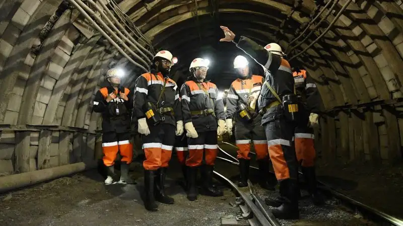 Это было похоже на обычный гостевой спуск под землю: инструктаж, выдача спецодежды, шахтерские нелегкие СИЗы и клеть на 600 метров вниз. Главный инженер шахты им. Кузембаева АО "АрселорМиттал Темиртау" Александр Переберин рассказал артистам о новом цифровом оборудовании на шахте, о подземной системе мониторинга, перспективах развития горных объектов, о том, как устроена шахта и как добираются горняки до рабочего места.