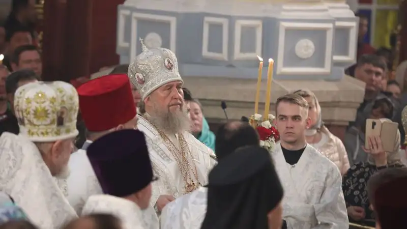Пасхальную службу в главном храме Алматы – Вознесенском Кафедральном соборе – возглавил митрополит Астанайский и Казахстанский Александр.