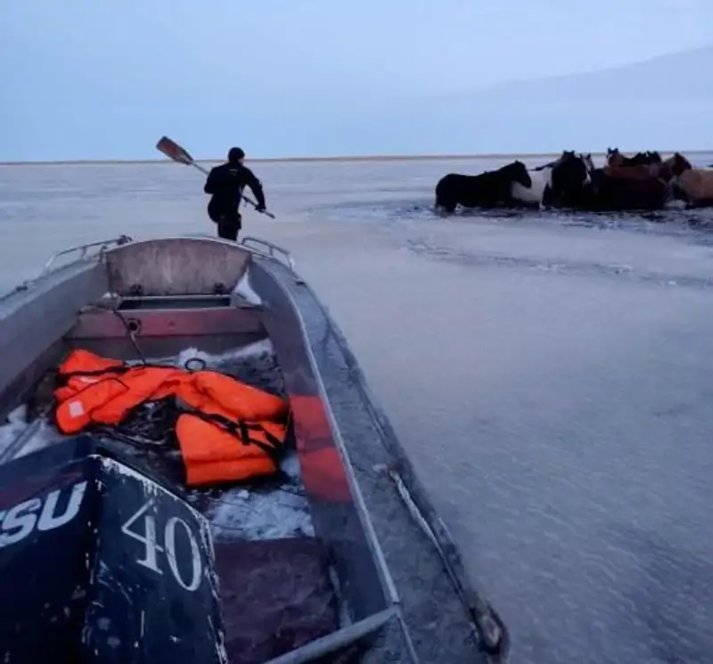 Спасатели вместе с местными органами незамедлительно прибыли на место происшествия с техникой. Они пробили ход лодкой сквозь лед и провели лошадей до безопасного места, спасая их от замерзания и утопления.
