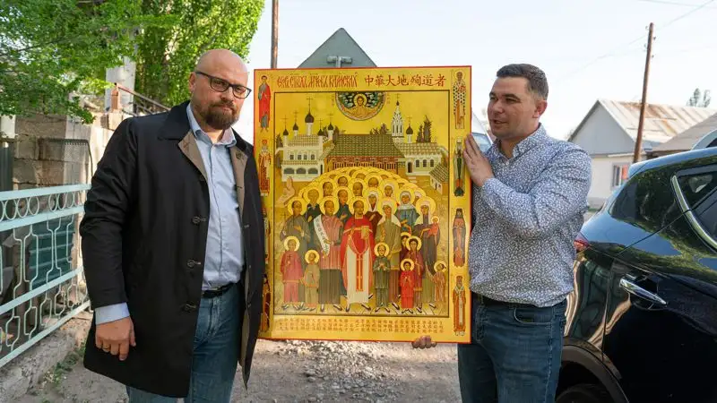 Икону – дар общественного фонда "Апостол" – принял настоятель Казанского храма иеромонах Аверкий (Белов). Он рассказал, что трагические события, которым посвящена икона, происходили в Китае, который находится на расстоянии четырех десятков километров от поселка Коктал.