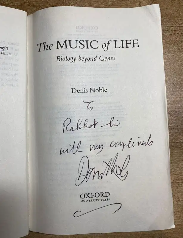 "Мне хотелось с ним познакомиться, потому что я читал его книгу "Музыка жизни", где он объясняет системную биологию и функции генов сквозь призму музыкальных метафор. Я был очарован метафорами, которые используются в этой книге, а также его методом их применения для объяснения научных явлений. Меня самого интересует взаимосвязь между современной музыкой и математикой, физикой и другими науками. А в книге профессора Нобла были приведены примеры того, как биологию можно объяснить с помощью метафорических сравнений с музыкой", – делится Абдысагин.