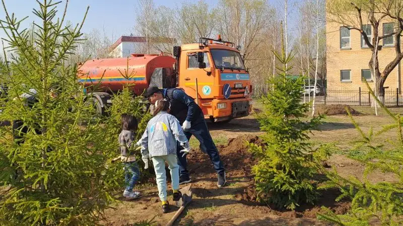 "Здесь высаживаются хвойные и лиственные деревья - ель, сосна, а также береза и вяз. Всего 150-160 деревьев. А по району "Байконур" планируем высадить более 1050 деревьев", - сказал заместитель акима района "Байконур" Досхан Туякбаев.