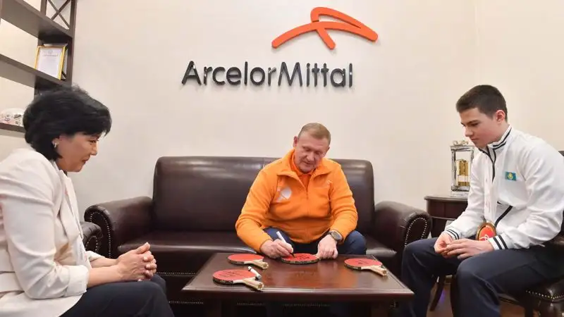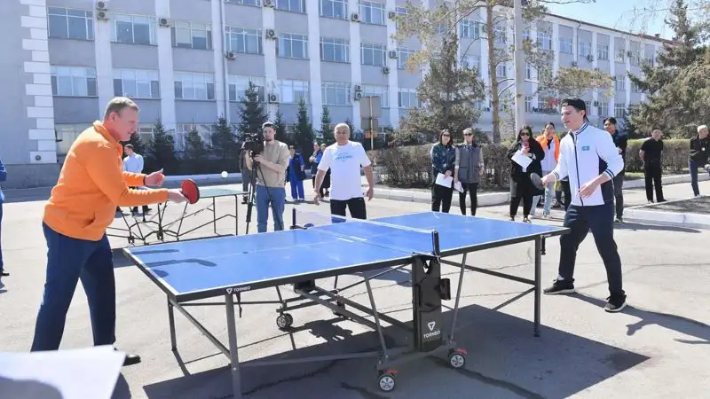 Далее гости приняли участие в торжественном открытии Чемпионата по настольному теннису на Кубок генерального директора АО "АрселорМиттал Темиртау". Чемпион и генеральный директор даже разыграли партию.