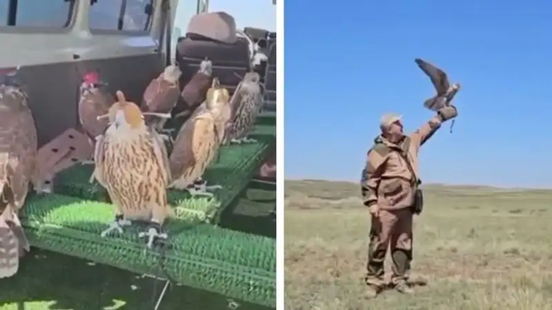 В Карагандинской области в дикую природу выпустили соколов из ОАЭ